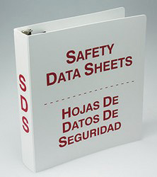Accuform Signs®SDS binder用于在塑料粘合剂中组织和存储您的SDS文档。封面和书脊有对比鲜明的红色字母。三环活页夹有36英寸金属安全链。活页夹有白色或黄色的红字。有英语和西班牙语版本。
