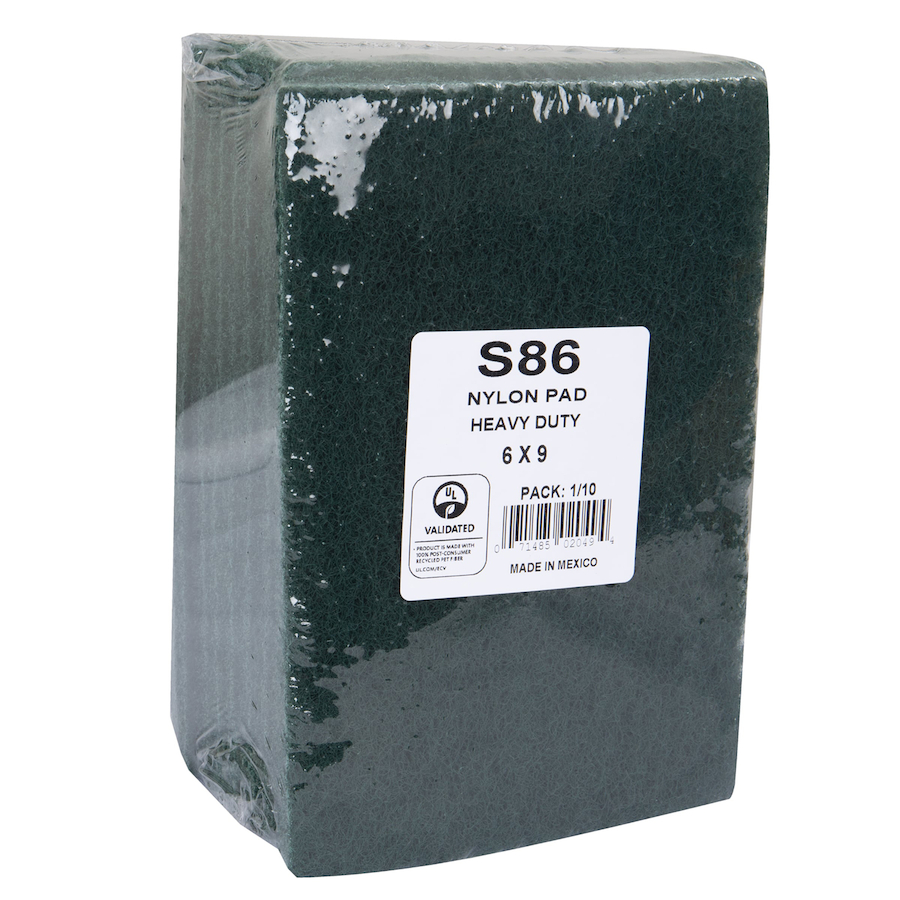 Prime Source® Heavy Duty Green Nylon Blend Scour Pads are thick, flexible and tough. Ideal for heavy duty and aggressive cleaning action for tough cleaning jobs. The Medium duty scouring pads are ideal for cleaning equipment and removing grime from surfaces. 6" x 9" size.