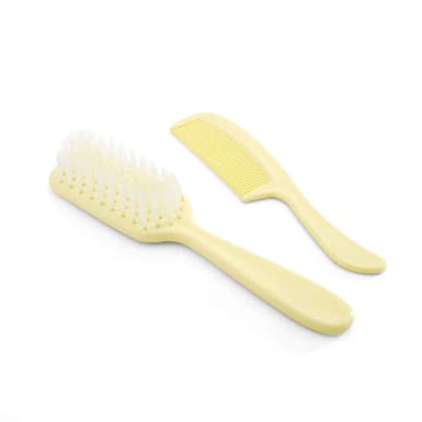 MediChoice婴儿梳子和刷子套装是男女皆宜的黄色,其特点是一个带有超软尼龙刷毛的刷子和一个一次性梳子,一边是细刷毛,另一边是超细刷毛。刷子和梳子是单独包装的。在你的尿布包里放一套,另一套放在置物柜里。